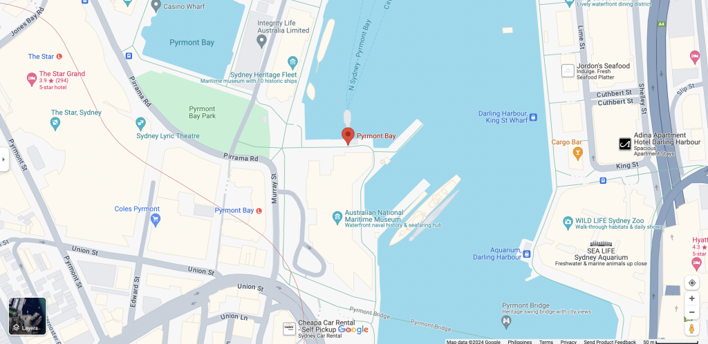 The final pick-up location on our CBD list is Pyrmont Bay, situated adjacent to the Australian National Maritime Museum and in close proximity to The Star Casino. What sets it apart from other docks is the freedom it offers to vessels, with fewer restrictions to navigate. And let’s not forget the breathtaking views that await you—a chance to admire the majestic Tall Ship James Craig and the Australian-built replica of the HMS Endeavour.